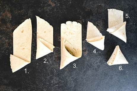making sure to cover filling and form a triangle. 7.